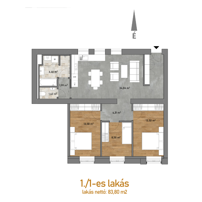 - Lakás nettó mérete: 83,80 m²