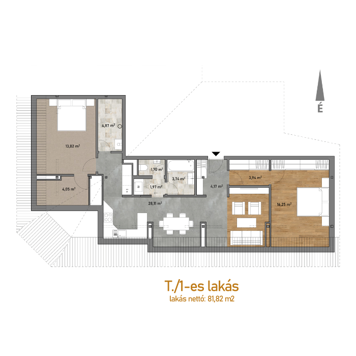 - Lakás nettó mérete: 81,82 m²